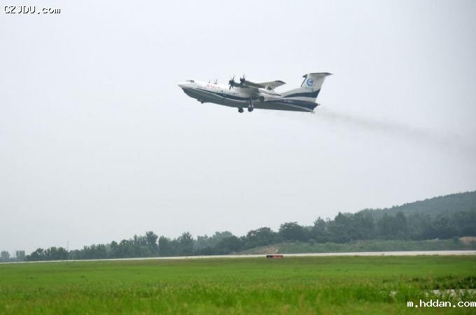 陆上首飞一年后,2018年10月20日,AG600飞机在荆门漳河机场滑行入水,随即从水面腾空而起,完成既定一系列试飞科目后,成功经受了水上首飞的考验。
